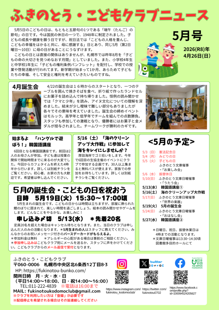 ふきのとう・こどもクラブニュース 5月号ができました。